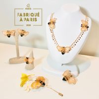 Salon de Reine Paris est une marque de bijoux brodés basée à Paris, qui crée des motifs originaux inspirés par des pétales, des fleurs, des plantes, des insectes et des voyages en France. Chaque pièce est réalisée à la main, grâce à une broderie minutieuse. La technique de broderie fondamentale utilisée est connue sous le nom de broderie haute couture. Son nom officiel, la broderie de Lunéville, est une technique traditionnelle indispensable à l’essor de la haute couture française. Elle a vu le jour en 1865 dans la ville de Lunéville, au nord de la France. Principalement employée pour la confection de robes de haute couture, cette méthode consiste à coudre perles et paillettes, une à une, à la main. En 2020, cet art a été inscrit au patrimoine culturel immatériel de l’UNESCO. Point après point, l’utilisation du crochet pour disposer ces minuscules matériaux crée une œuvre empreinte de beauté et d’émotion. En particulier, les perles vintage extrêmement rares et minuscules, impossibles à enfiler sur une aiguille, trouvent leur place grâce à la technique de broderie de Lunéville au crochet. Certaines créations mélangent également broderie à l’aiguille et broderie de Lunéville, selon les spécificités des œuvres. Laissez-vous émerveiller par ce monde miniature, créé à partir d’un simple crochet.
