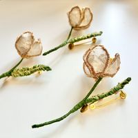 Salon de Reine Paris est une marque de bijoux brodés basée à Paris, qui crée des motifs originaux inspirés par des pétales, des fleurs, des plantes, des insectes et des voyages en France. Chaque pièce est réalisée à la main, grâce à une broderie minutieuse. La technique de broderie fondamentale utilisée est connue sous le nom de broderie haute couture. Son nom officiel, la broderie de Lunéville, est une technique traditionnelle indispensable à l’essor de la haute couture française. Elle a vu le jour en 1865 dans la ville de Lunéville, au nord de la France. Principalement employée pour la confection de robes de haute couture, cette méthode consiste à coudre perles et paillettes, une à une, à la main. En 2020, cet art a été inscrit au patrimoine culturel immatériel de l’UNESCO. Point après point, l’utilisation du crochet pour disposer ces minuscules matériaux crée une œuvre empreinte de beauté et d’émotion. En particulier, les perles vintage extrêmement rares et minuscules, impossibles à enfiler sur une aiguille, trouvent leur place grâce à la technique de broderie de Lunéville au crochet. Certaines créations mélangent également broderie à l’aiguille et broderie de Lunéville, selon les spécificités des œuvres. Laissez-vous émerveiller par ce monde miniature, créé à partir d’un crochet de Lunéville.